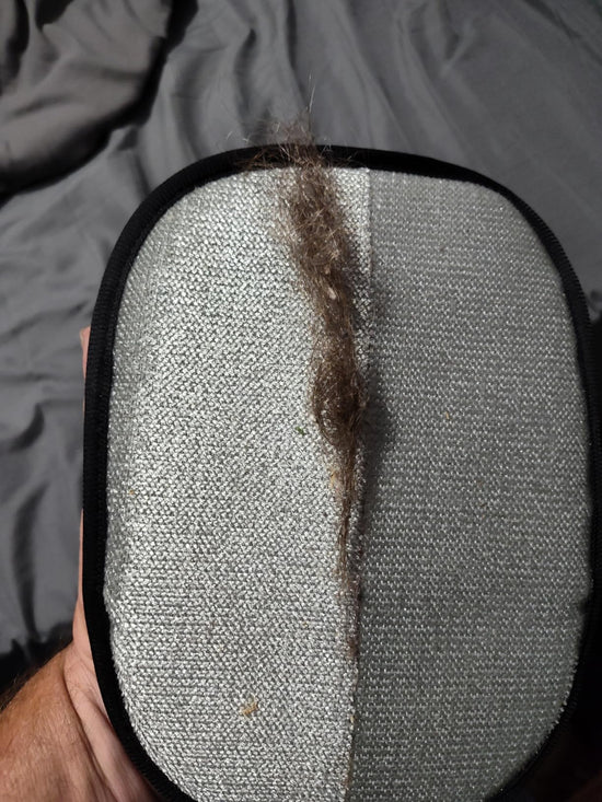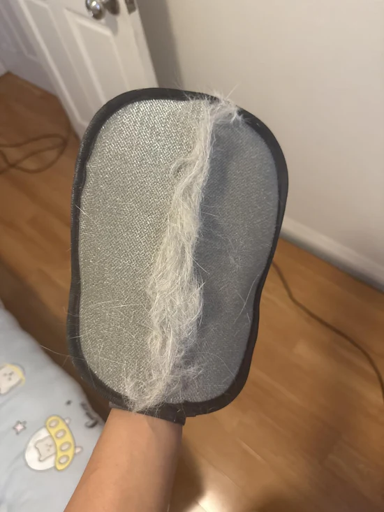 Just peel off the collected hair. If needed, rinse the glove with warm water and let it air dry.