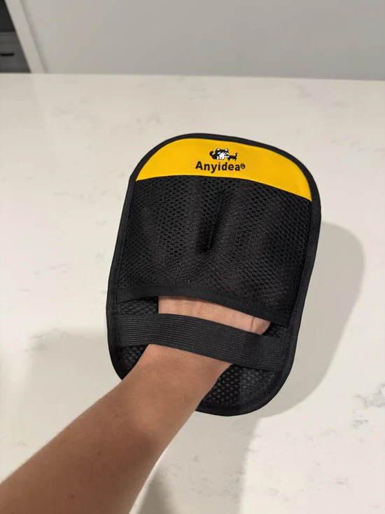 The Anyidea® glove’s textured surface clings to pet hair. Simply wipe over the area, and the hair sticks to the glove for easy collection.